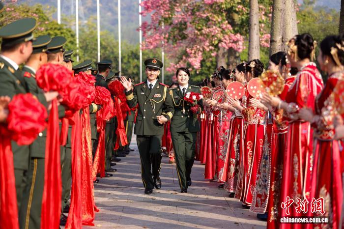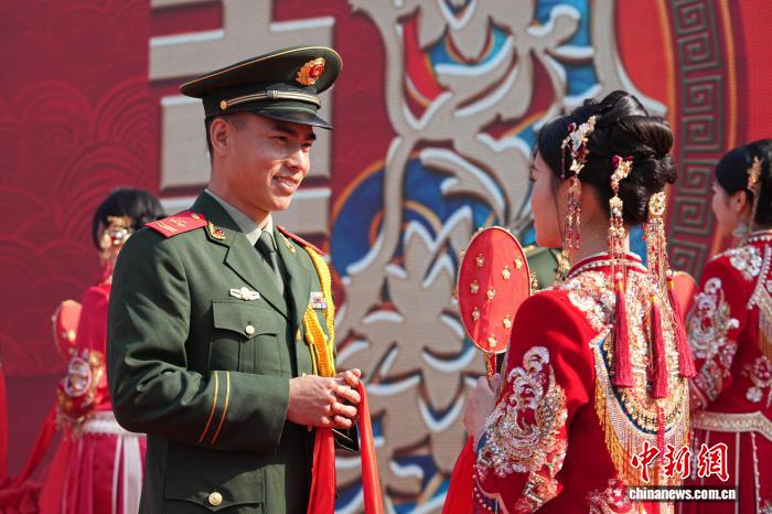 图为生人背民卒及来宾散发喜糖。李晓鹏 摄